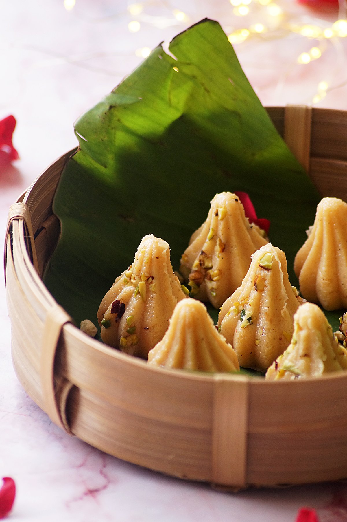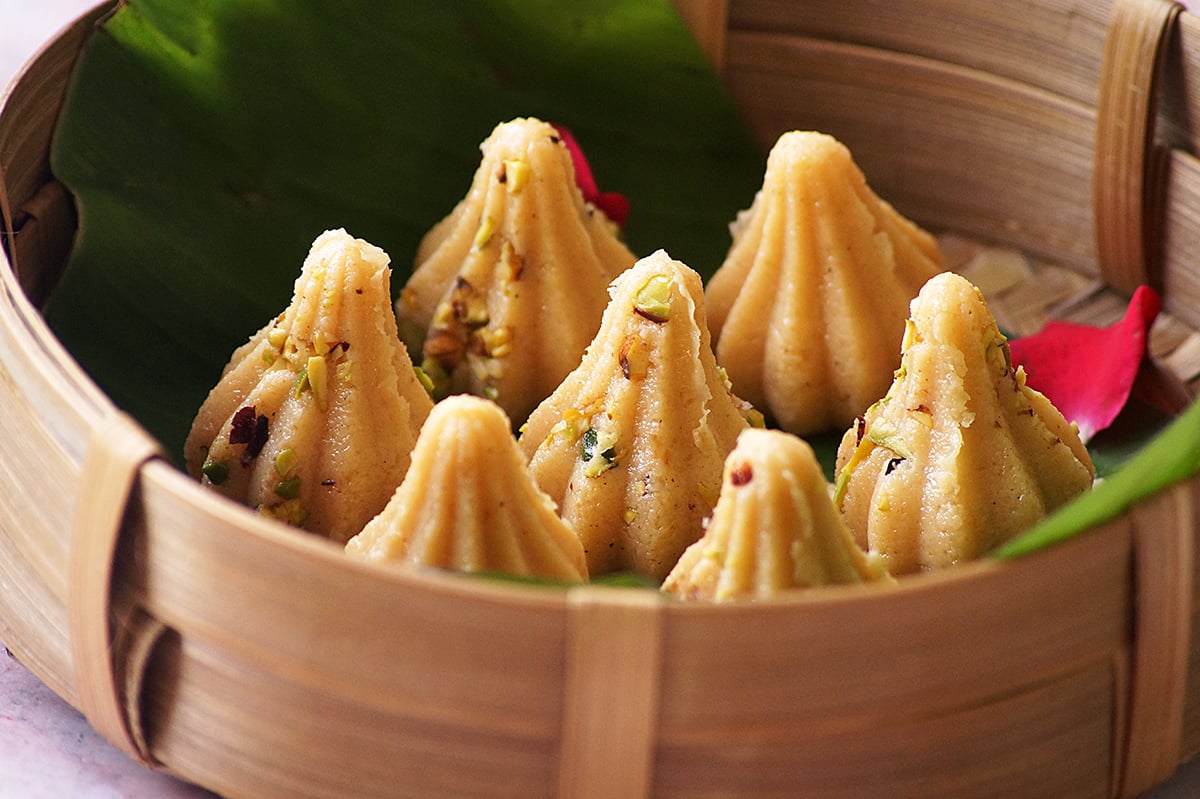 Modaks are Indian sweet dumplings that are commonly prepared during festivals such as Ganesh Chaturthi. Modaks are traditionally shaped into small, cone-like structures using a mould. But, you can also roll them into round balls.