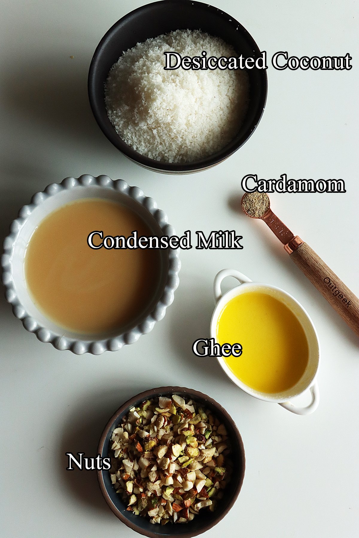 Coconut - This recipe needs desiccated coconut. Use a good quality coconut for the best flavor and taste. Fresh coconut can be used as a substitute but you will need roast it in a little bit of ghee first and then cook for little longer to get rid of all the moisture.