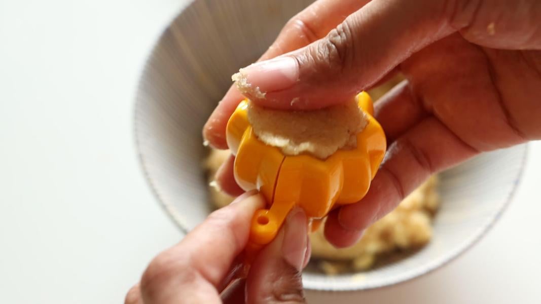 - Grease a modak mould with a little bit ghee or coconut oil.