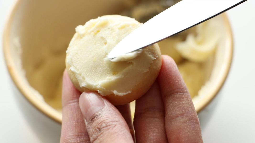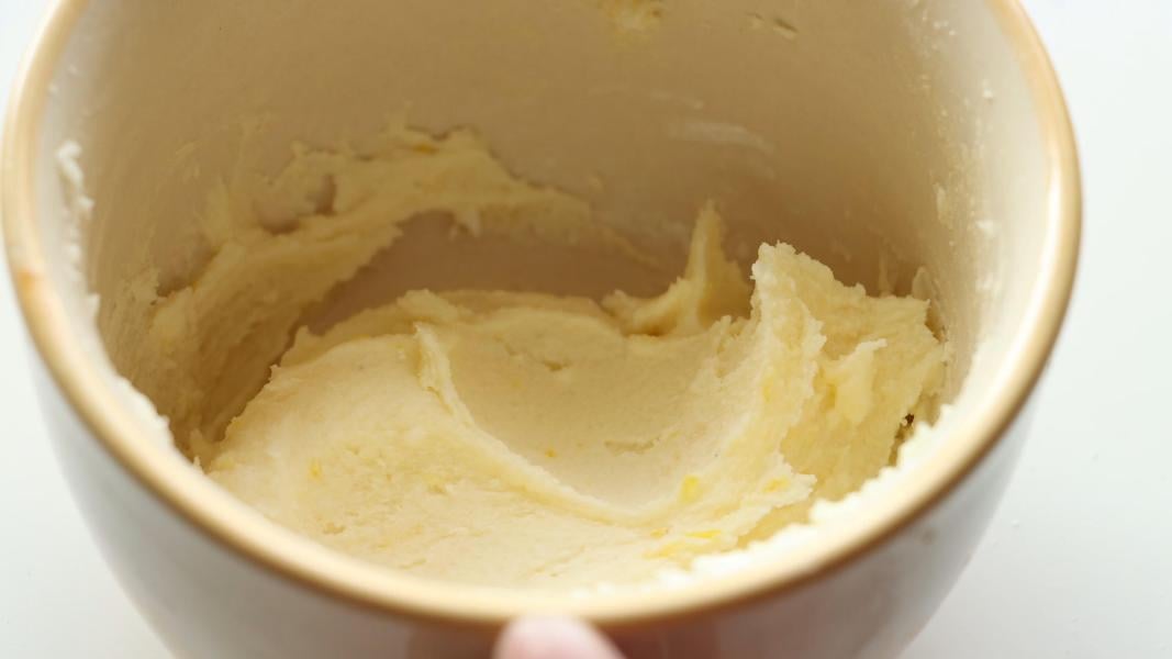 - Cream together butter, zest and powdered sugar in a mixing bowl. Add lemon juice and mix everything well.