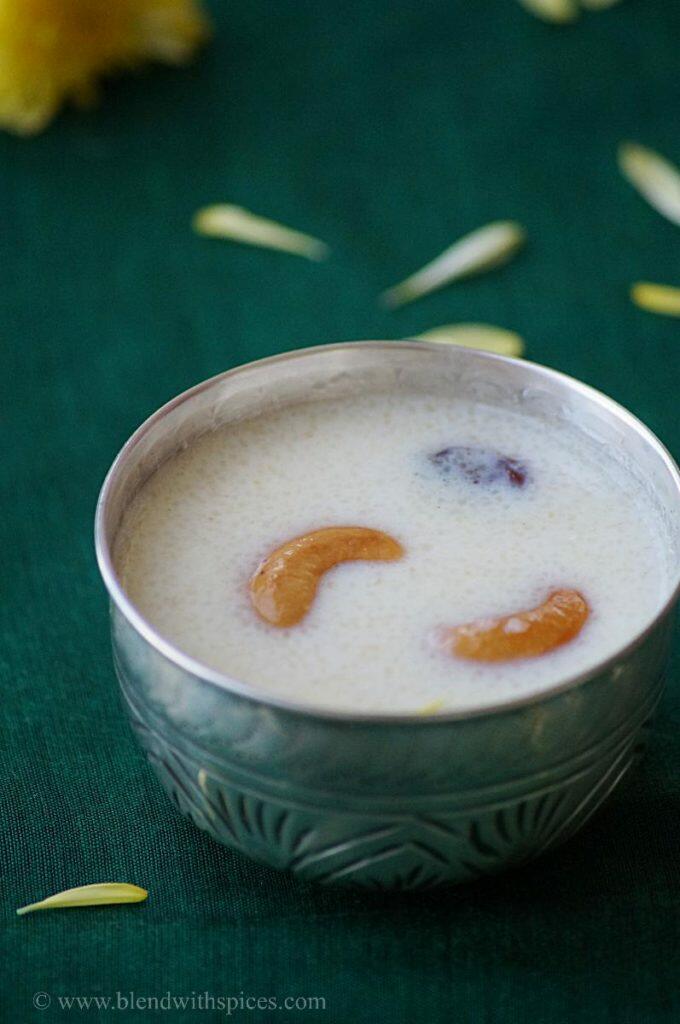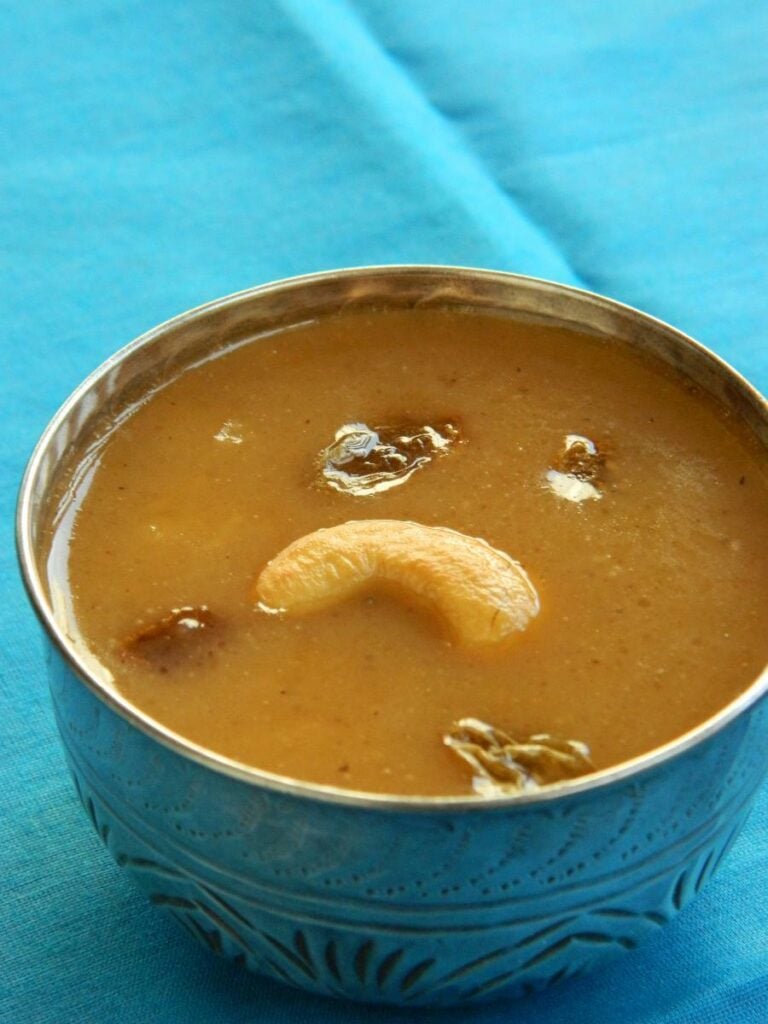 - Add little water to the jaggery and heat until the jaggery dissolves completely. Strain to remove impurities and keep it aside.