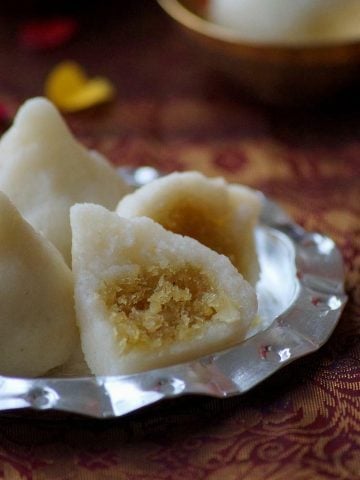 Godhuma Kudumulu are soft, sweet, steamed dumplings made with wheat flour, jaggery, coconut and cardamom. It's a comforting festive dish that is perfect for Ganesh Chaturthi.