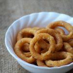 Chegodilu or Chakodilu are crunchy and fried savory deep-fried small rings from Andhra Pradesh, India. They are a famous hot snack and traditionally made with rice flour, but can also be made using maida or plain flour.