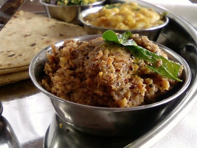Kalchina Aratikaya Pachadi ~ Fire Roasted Plantain (banana) ChutneySoak the tamarind in water and set aside. Coat the plantain with oil and place the plantain directly on the stove flame. Roast the plantains, until they are black. When the plantains turn black, remove from the flame and allow it to cool. Peel the plantain and cut into pieces. Keep them aside. Heat 2 tea spoons of oil in frying fan. Add and fry the coriander seeds and urad dal to light brown color. Now add the red chillies and let them fry for another few minutes. Take it out from the pan and allow it to cool. grind the roasted spices into fine powder. Then add the roasted plantains, soaked tamarind and salt to it. Grind into a paste using a little water. Heat one table spoon of oil in pan for seasoning. Add the mustard seeds and chana dal and let them splutter. When the seeds stop popping, add the curry leaves and hing. Stir for another few minutes and turn off the flame. Add this popu / tadka to the chutney and mix well. Serve with dosa, roti or rice.
