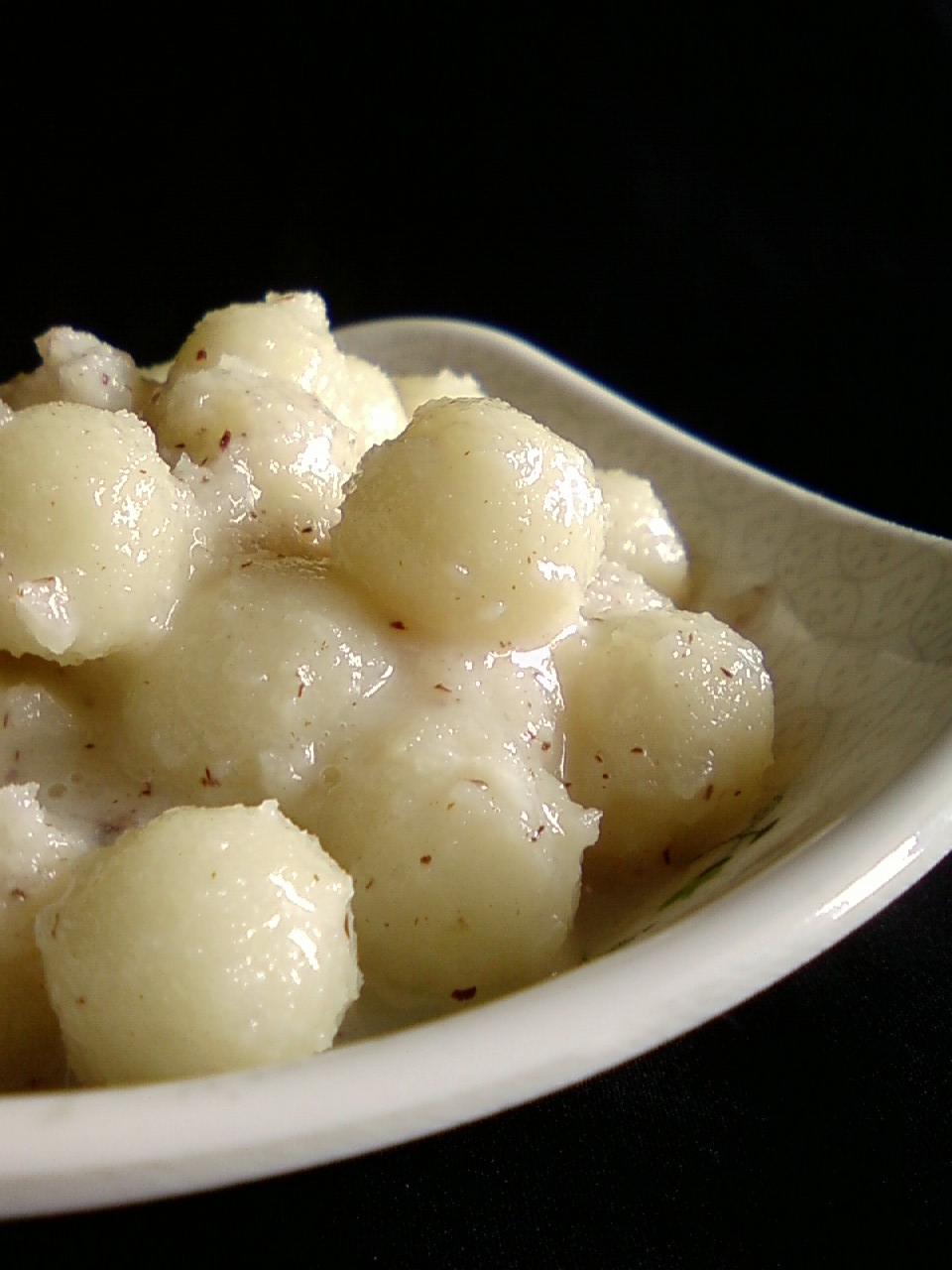 Tiny rice flour dumplings cooked in a milk and coconut sauce. A traditional Andhra recipe for Ganesh chaturthi or vinayaka chaviti.