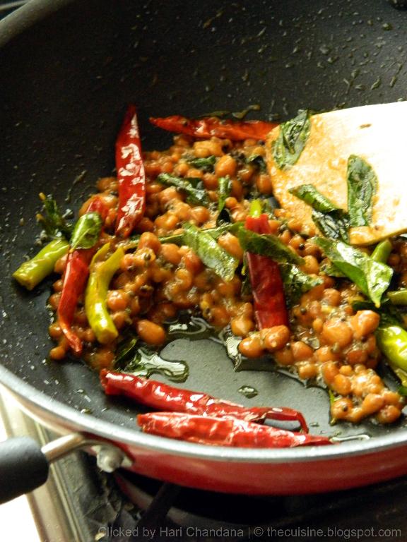 the mustard seeds, chana dal, urad dal and peanuts and let them